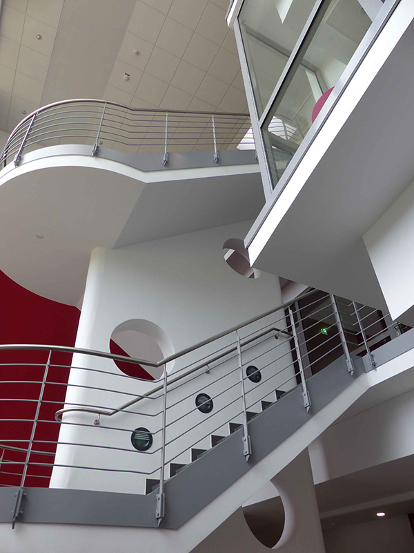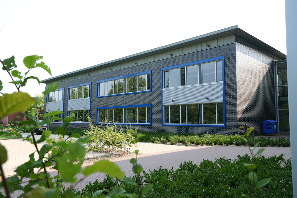 Dreigeschossig, 1.850 m² Nutzfläche: Labore, Verwaltung, Hörsäle
